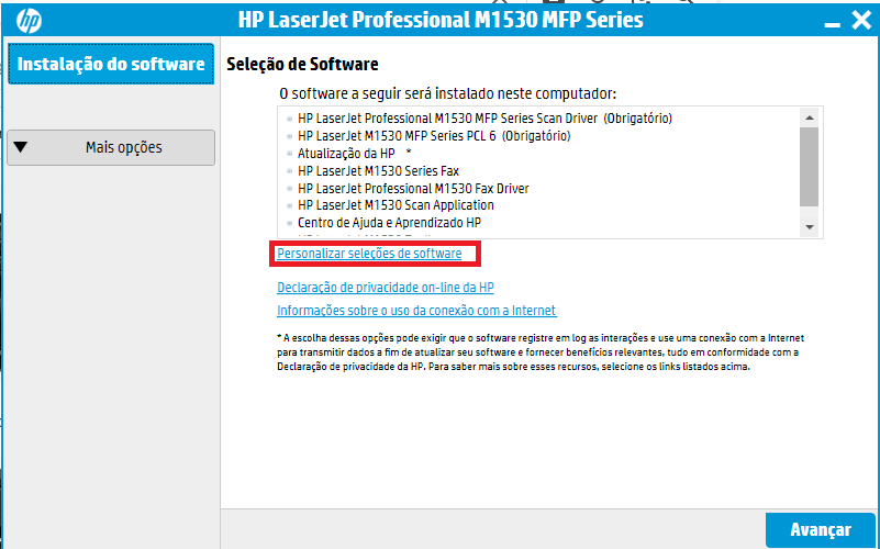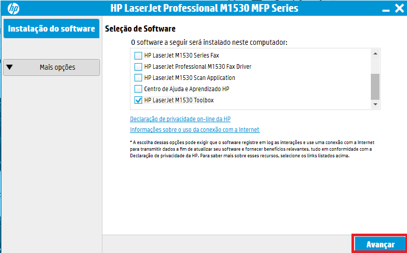 4º - Deixe a primeira e a ultima opção somente selecionada e clique em avançar.