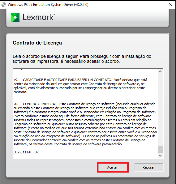 2º - Execute o instalador, aceite o contrato de licença e clique em "Aceitar";